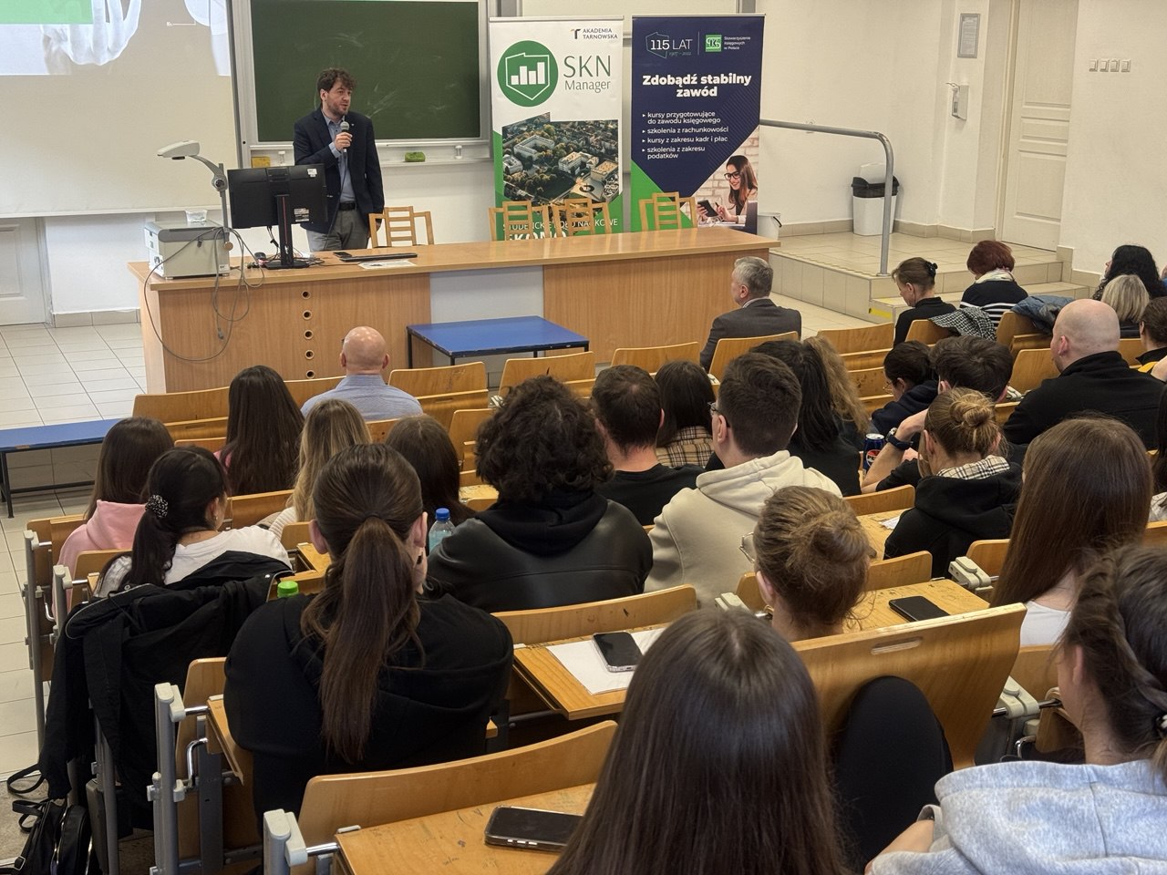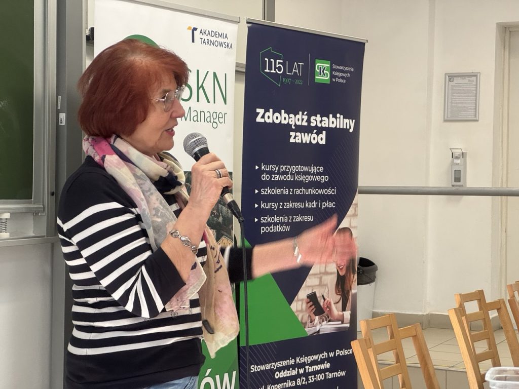 Wykład poprowadził  dr Paweł Zieniuk – Wiceprezes Zarządu Głównego SKwP, Sekretarz Zarządu SKwP O/O w Krakowie. Podczas spotkania obecni byli także: Prezes Zarządu SKwP Oddział w Tarnowie Jadwiga Jakubowska-Babiarz, Dziekan Wydziału Prawa, Administracji i Ekonomii dr Andrzej Ogonowski, Opiekun SKN Manager mgr inż. Barbara Partyńska-Brzegowy, Kierownik Katedr Ekonomii i Finansów dr Dorota Koptiew. Studenci Katedry Ekonomii i Finansów oraz zaproszeni goście wysłuchali bardzo ciekawego wykładu z zakresu charakterystyki fundacji i stowarzyszeń, specyfiki rachunkowości takich instytucji, jak również różnic w obsłudze podmiotów pożytku publicznego i innych.