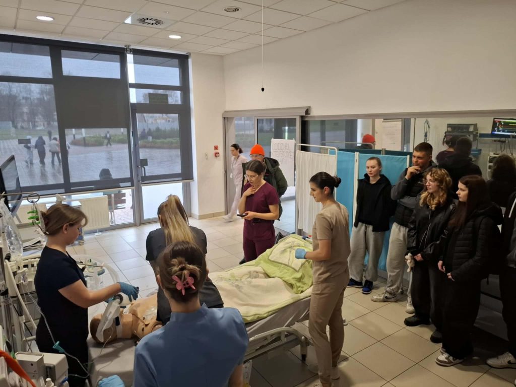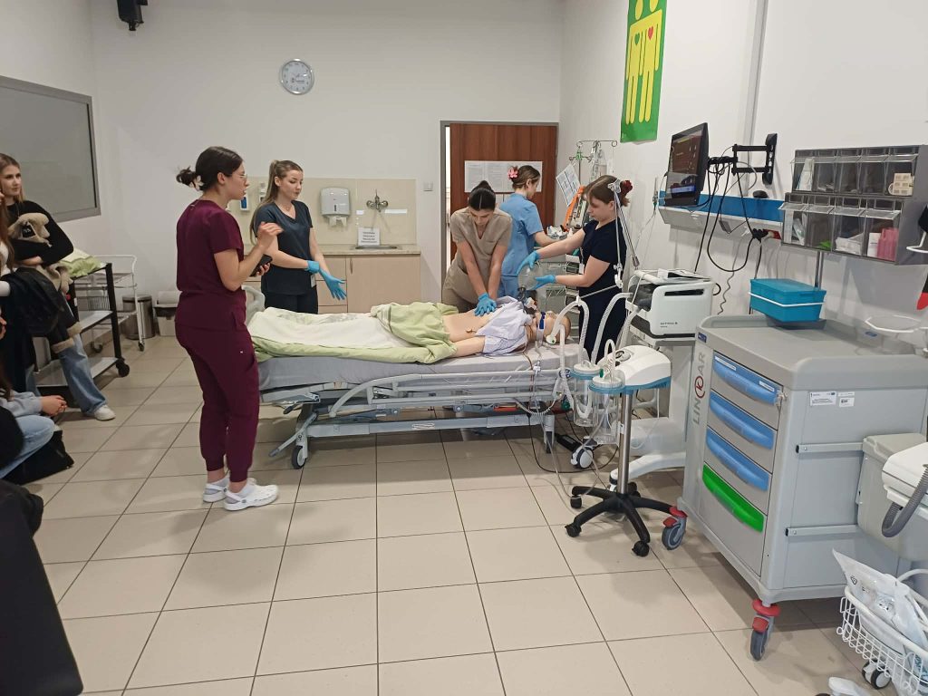 27 marca 2026 r. podczas dnia otwartego w Akademii Tarnowskiej, w specjalnie przygotowanej sali „Oddział Intensywnej Terapii”, studentki III roku pielęgniarstwa zaprezentowały odwiedzającym symulację medyczną zatrzymania krążenia w mechanizmie asystolii.