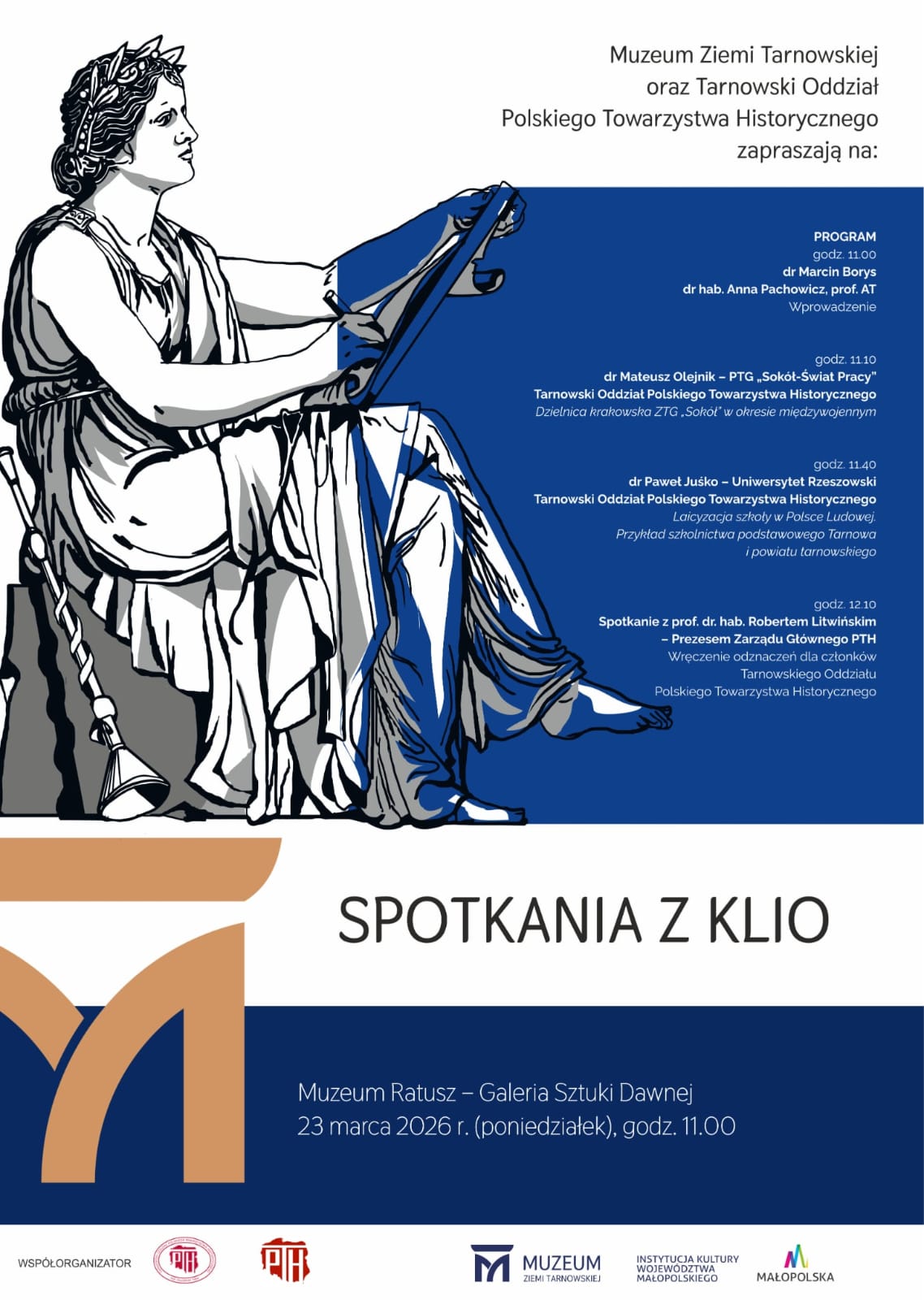 „Spotkanie z Klio” odbędzie się w poniedziałek 23 marca 2026 r. o godz. 11.00 w Muzeum Ratusz – Galerii Sztuki Dawnej w Tarnowie.