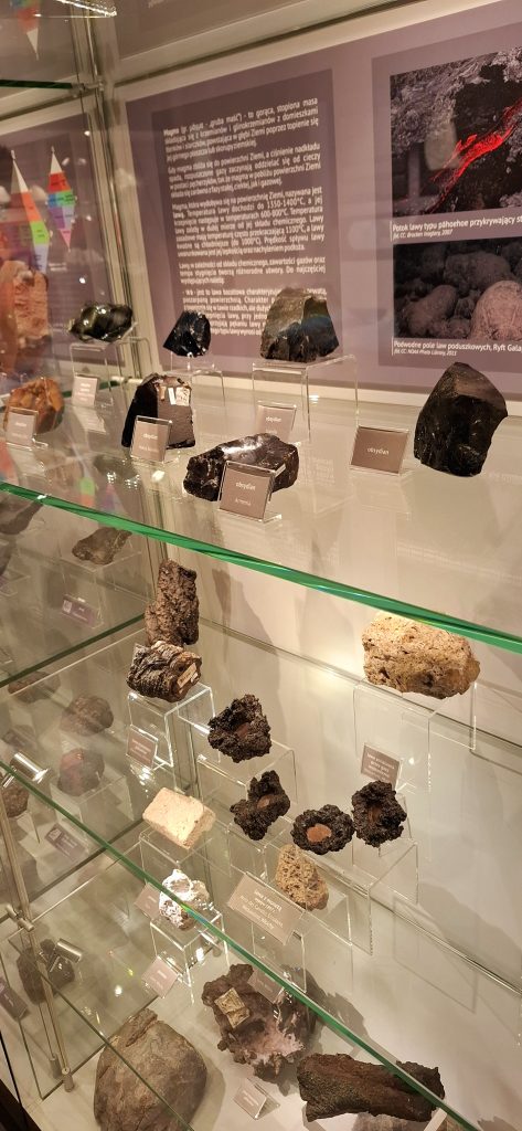 – wystawy geologiczne prezentujące różnorodne skały i minerały,