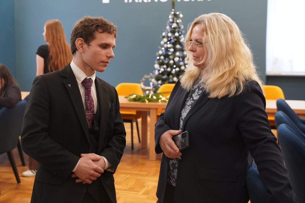 W wydarzeniu uczestniczyli interesariusze zewnętrzni na co dzień współpracujący ze SKN Manager, w tym Pani Prezes Jadwiga Jakubowska-Babiarz, reprezentująca Stowarzyszenie Księgowych w Polsce Oddział w Tarnowie, oraz Pan Naczelnik Henryk Zdybel z II Urzędu Skarbowego w Tarnowie. Obecne były również władze Uczelni: Pani Prorektor ds. Studenckich i Dydaktyki dr Małgorzata Martowicz, prof. AT, Pan Prorektor ds. Nauki i Rozwoju dr hab. Rafał Kurczab, prof. AT, a także władze Wydziału Prawa, Administracji i Ekonomii z Panem dr. Andrzejem Ogonowskim, kierownicy jednostek organizacyjnych Akademii Tarnowskiej oraz kadra dydaktyczna Katedry Ekonomii i Finansów. Najliczniejszą grupę uczestników stanowili jednak członkowie SKN Manager wraz z opiekunem Koła – mgr inż. Barbarą Partyńską-Brzegowy.