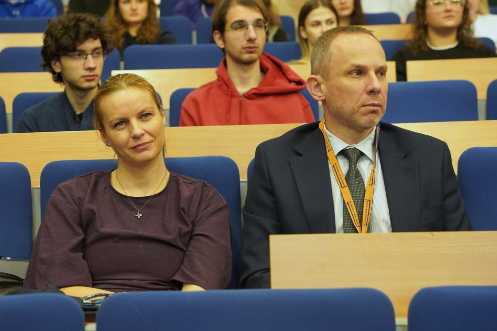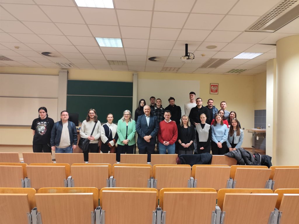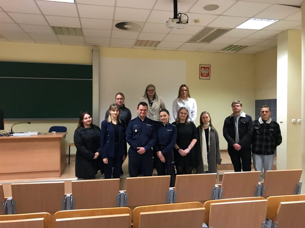 Celem inicjatywy było nie tylko wzbogacenie wiedzy studentów w zakresie prawa wykroczeń, ale również zachęcenie ich do rozważenia możliwości kariery zawodowej w Policji. Wykład umożliwił uczestnikom bliższe poznanie specyfiki pracy policjanta, w tym wymagań, obowiązków i wyzwań związanych z pełnieniem tej funkcji. Spotkanie zakończyło się interaktywną sesją pytań i odpowiedzi, podczas której nadkomisarz Jacek Wójcik udzielał wyczerpujących wyjaśnień na pytania studentów, wzbudzając żywe zainteresowanie zgromadzonych słuchaczy.