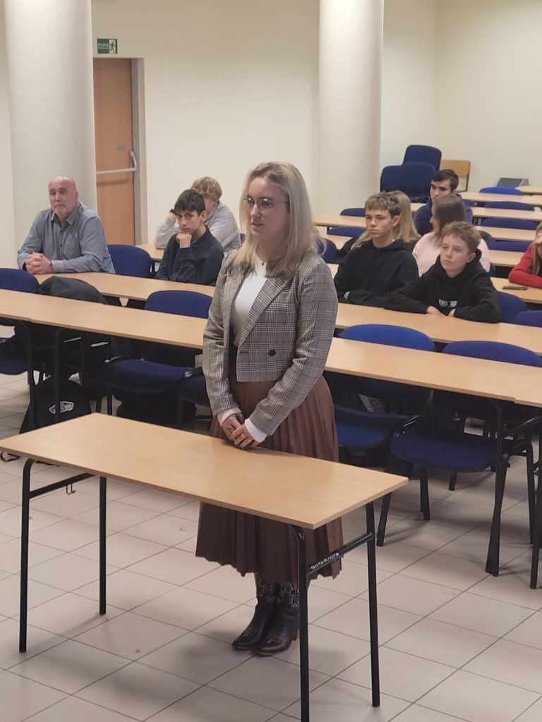 Równolegle odbyły się warsztaty prowadzone przez Koło Psychologiczne, które koncentrowały się na zagadnieniach związanych z samooceną i funkcjonowaniem jednostki w relacjach społecznych. Uczestnicy mieli możliwość zastanowić się, w jakim stopniu postrzeganie siebie kształtowane jest przez własne przekonania, a w jakim przez opinie otoczenia. Zajęcia miały charakter interaktywny i sprzyjały refleksji nad mechanizmami psychologicznymi istotnymi dla rozwoju młodego człowieka.