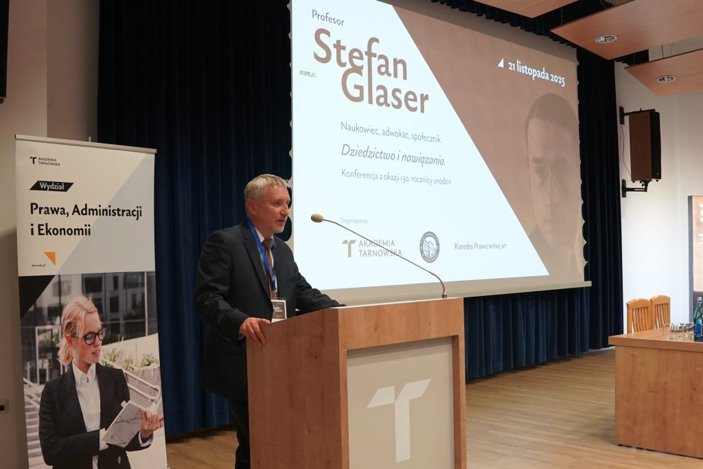 21 listopada 2025 r. odbyła się sesja naukowa pt. „Profesor Stefan Glaser – naukowiec, adwokat, społecznik. Dziedzictwo i nawiązania. Konferencja z okazji 130. rocznicy urodzin”, zorganizowana wspólnie przez Katedrę Prawa Akademii Tarnowskiej oraz Sąd Okręgowy w Tarnowie. Wydarzenie miało charakter interdyscyplinarnej refleksji nad dorobkiem jednego z najwybitniejszych przedstawicieli polskiej nauki prawa karnego, a zarazem prawnika praktyka i intelektualisty zaangażowanego w życie publiczne.