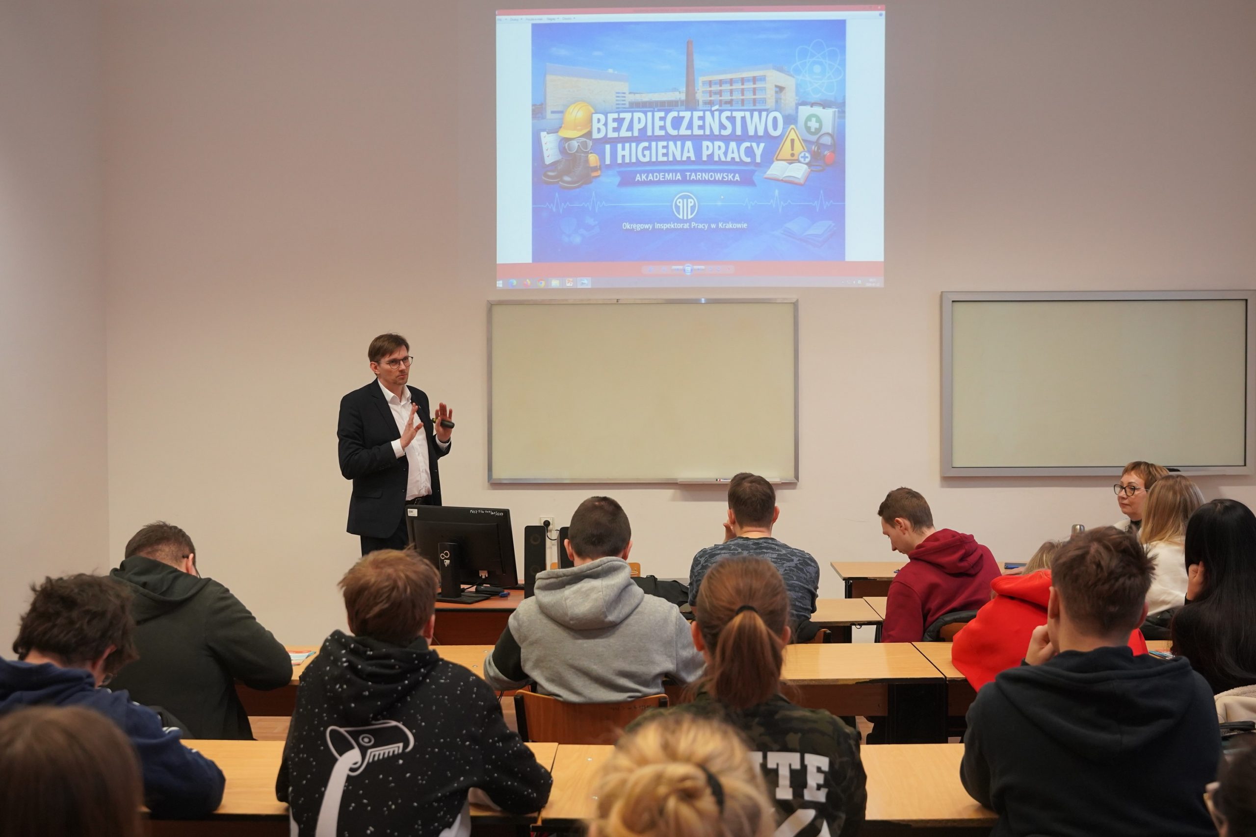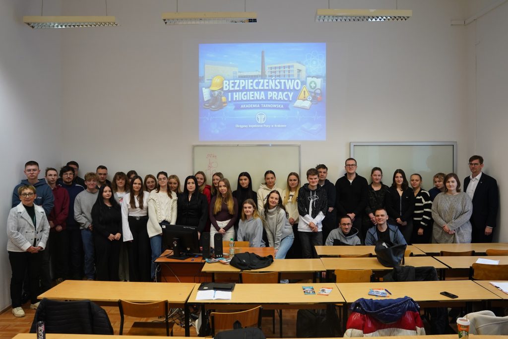 22 stycznia 2026 r. odbył się wykład dla studentów III roku administracji poświęcony zagadnieniom z zakresu prawa pracy, ze szczególnym uwzględnieniem bezpieczeństwa i higieny pracy (BHP). Zajęcia poprowadził Pan Piotr Motłoch – Zastępca Okręgowego Inspektora Pracy w Krakowie.